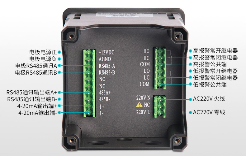 連續(xù)監(jiān)測數(shù)據(jù)通過變送輸出連接記錄儀實現(xiàn)遠傳監(jiān)控與記錄,也可以連接RS485接口通過MODBUS-RTU協(xié)議可方便聯(lián)入計算機實現(xiàn)監(jiān)控與記錄。