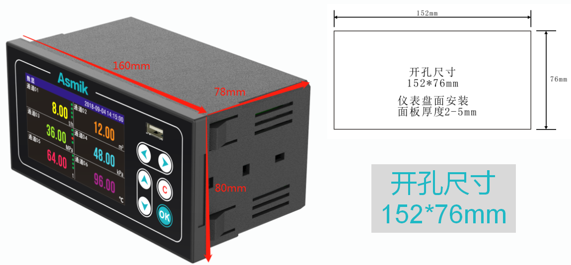 儀表尺寸  :面板 160*80mm,開孔 152*76mm